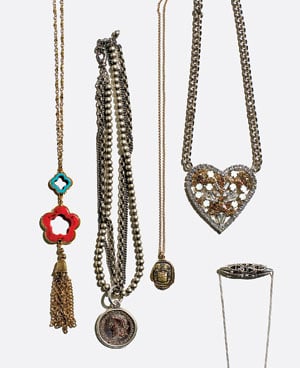Shereen de Rousseau scours the flea markets of Rome and Paris to find coins and medallions, which she brings back to Vancouver and casts in sterling silver. This bezel-set, oversized Roman medallion is strung on three different strands of sterling-silver chain ($450; shereenderousseau.com).