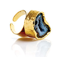 RIGHT Irit Sorokin’s lava-rock ring follows the natural shape of the subtly sparkling grey stone ($120; iritsorokindesigns.com).