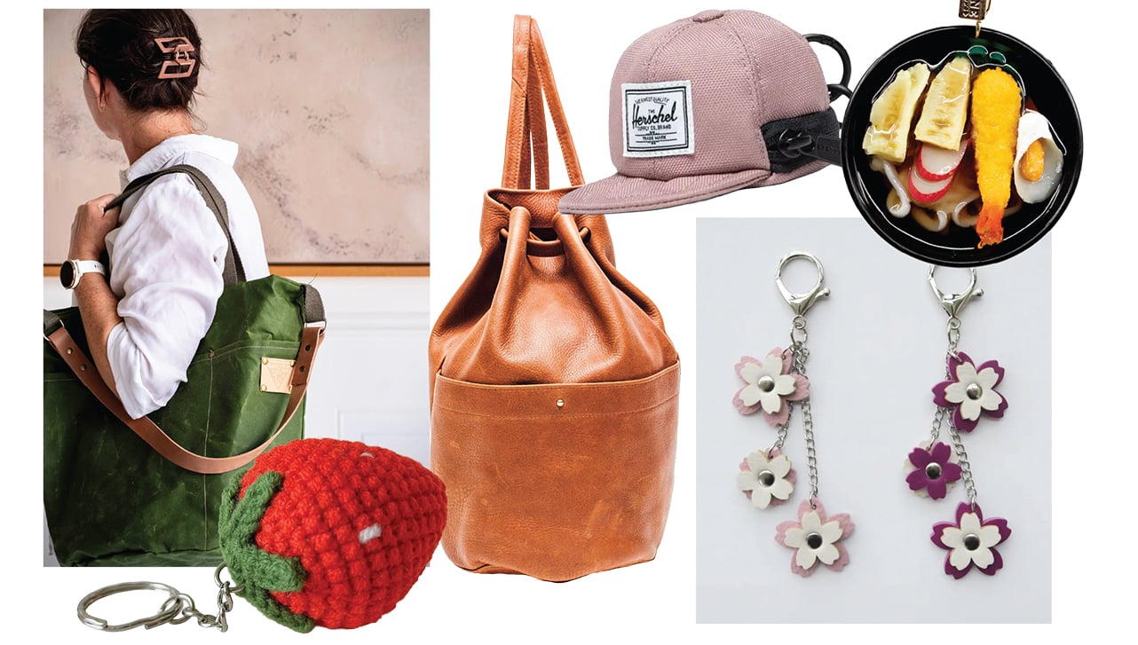 From rugged oilskin carryalls to crocheted strawberries and leather ghosties, these B.C. bag brands are leaning into playful add-ons that turn everyday accessories into conversation starters—proof that even the most practical pieces can have a little personality.