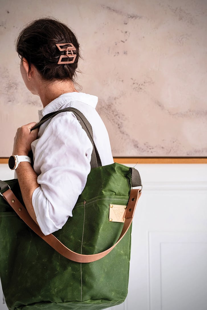 Fashionable adventurers: meet your match. Pemberton Bag Company founder Nina Babiuk wanted to create a sustainable bag for her camping and boating excursions, and turned to waterproof oilskin fabric (originally used by Scottish fishermen) to create durable, handmade bucket bags ($210), market bags ($130) and firewood carriers ($150).