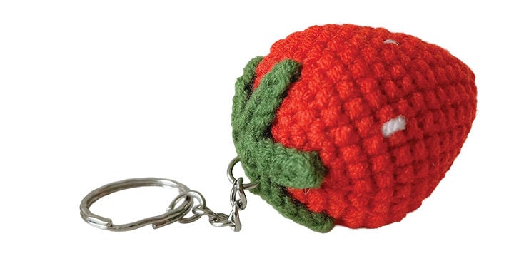 Churi’s made-in-B.C. crocheted bag adornments emanate with cutesy, crafty charm, with designs ranging from a pair of strawberries on a crocheted chain ($16) to butterflies and bell flowers ($25) that can be tied on to your purse du jour.
