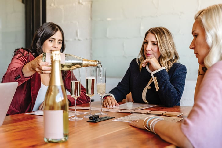 So, there was a future, but what sort of product? She had a love for sparkling as a starting point, and after tasting through a multitude of sparkling, red, white and rosé wines she was confident that, to her thinking, the sparkling products came closest to mirroring the taste of “normal” wine. So, that moment of truth: an entrepreneur has a good idea in a growing market, but now what? Stoller knew enough to realize she’d need some partners. That’s when she thought of a former coaching client of hers, Marina Billinghurst, who had solid background in marketing and creative design—and, given that Billinghurst’s brother owns Three Sisters winery, was someone with an understanding of the idiosyncrasies of the local wine industry. Billinghurst took very little convincing, and a partnership was formed. “We knew it would cost 10 times more than we planned for, but we were undaunted,” recalls Stoller.