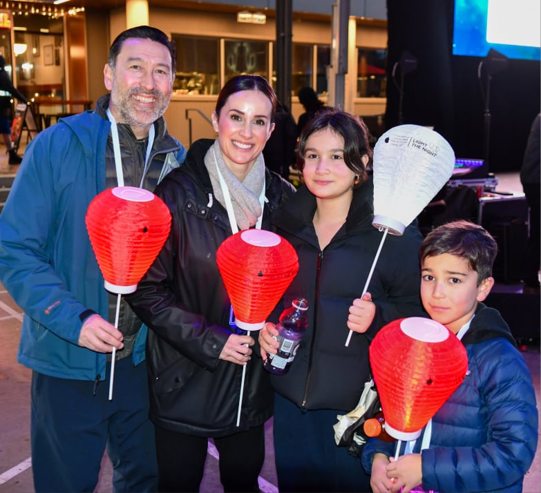 Kinji Bourchier and Laura Cundari with their two kids at Light the Night 2025.