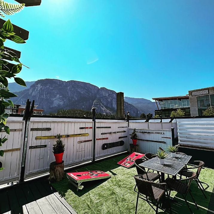 Situated on Cleveland Avenue in the heart of downtown Squamish, the combined Chieftain & Crash Hotel sits at a high-visibility junction along the Sea-to-Sky Highway. The Chieftain has anchored the strip since 1958, long serving as a landmark for residents and road-trippers heading between Vancouver and Whistler.