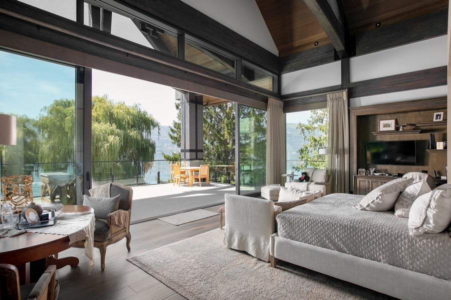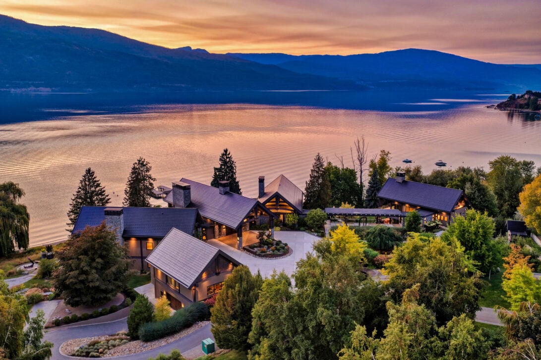 Situated on the shores of Okanagan Lake in Lake Country, the 20,000-square-foot main residence is surrounded by 850 feet of pristine lake frontage and lush, landscaped grounds. Built in 2017 by Legacy Homeworks and styled by Tara Sullivan Woll of Red Crayon, the home combines refined craftsmanship with modern technology, offering SMART-home integration, geothermal heating and cooling and a private on-site water filtration plant.