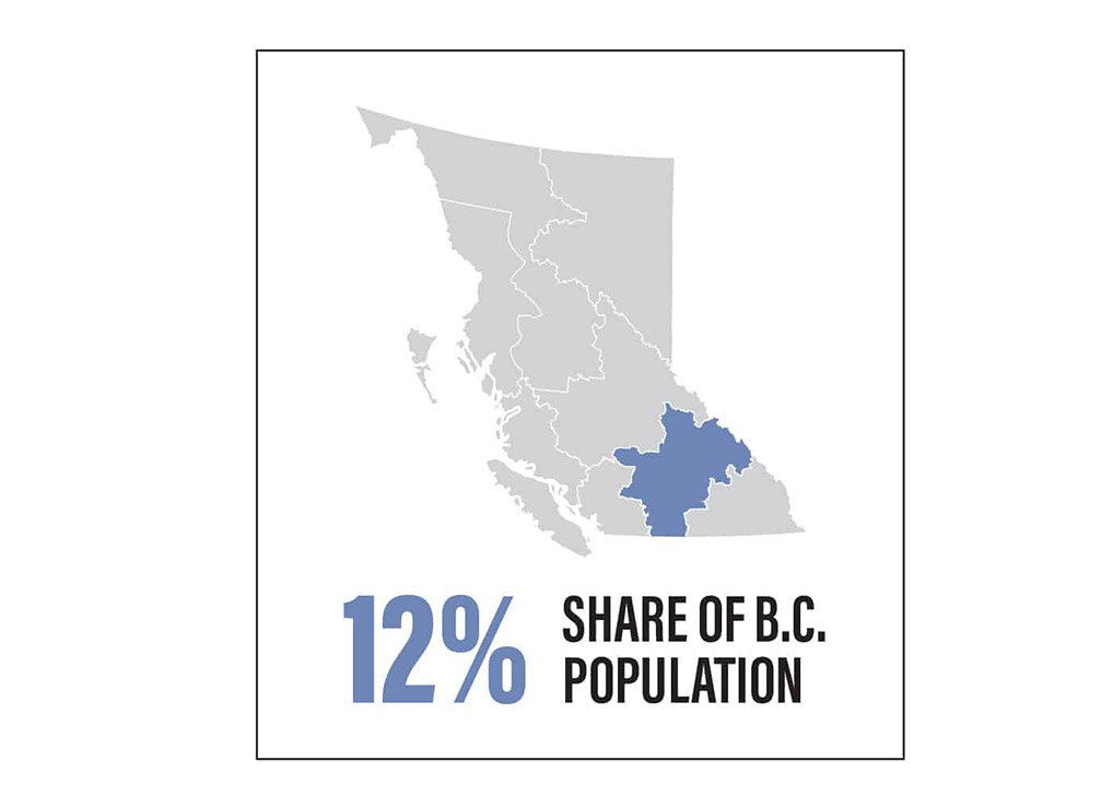 The region has seen growth in educational services, too, with the ongoing expansion of the University of B.C.’s Okanagan campus as well as Thompson Rivers University in Kamloops. The proportion of the regional labour force with high, 67.9 percent, reflecting both the increased availability of post-secondary programs and the heightened demands of the job market. The agriculture industry also remains strong, with major advances in agri-tech and agrifood production as well as significant applied research projects supported by the region’s post-secondary institutions. Health services also remain a key sector in the regional economy. An accessible and diverse range of services are supported in part by the large proportion of retirees the region attracts.