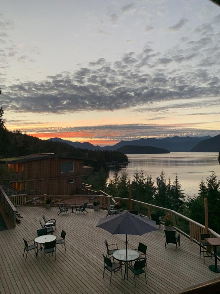 And it’s not just the rose-coloured glasses that are metaphorically sitting on my freshly engaged face. After ferrying over to Gibsons and then navigating the winding coast road for about an hour and a half, we arrive at the luxury cabin-style West Coast Wilderness Lodge in Egmont (and a truly breathtaking view). Standing on my patio just before sunset, I’m surrounded by a gold glow that radiates off the evergreen-covered mountains over Skookumchuck Narrows. In a few hours, the whirlpools and whitewater of the nearby Sechelt Rapids will be at their peak. For now, the water is calm and the serenity is unreal.
