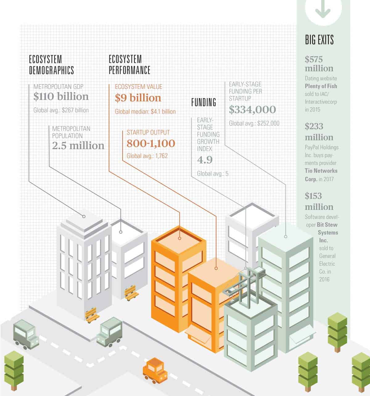 The report is driven by one question: where does an early-stage startup stand the best chance of building a global success? Cities and regions are rated on such factors as company performance, access to funding, number of experienced engineers and market reach.