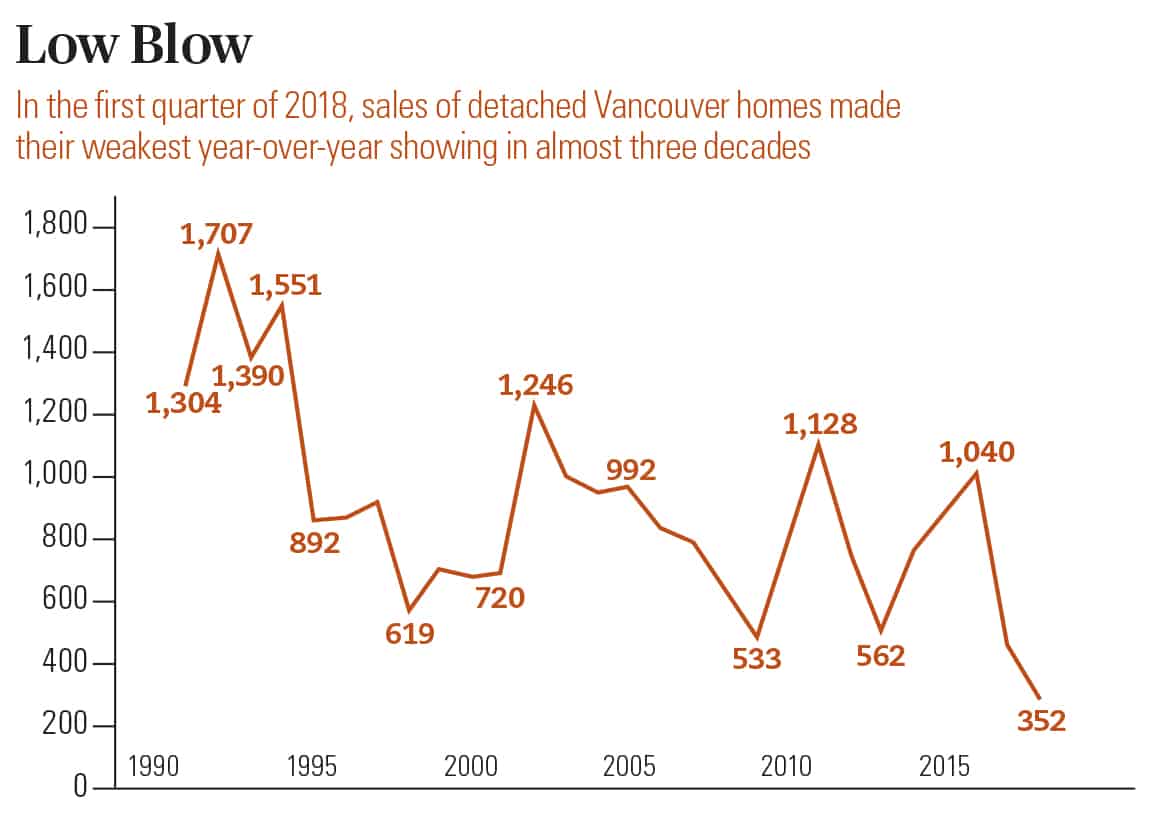 Many sellers remain willfully optimistic about a rebound in 2018, but it hasn’t been the start they were hoping for. In the first quarter, Vancouver detached home sales fell to their lowest for that period in more than 27 years.