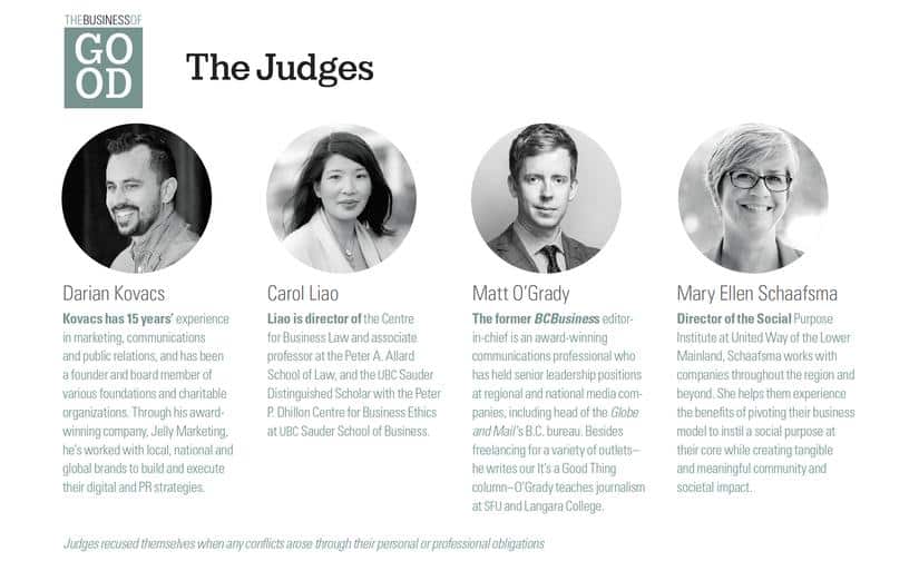 The second edition of our Business of Good Awards aims to celebrate organizations throughout B.C. that turn the principles of social responsibility into action